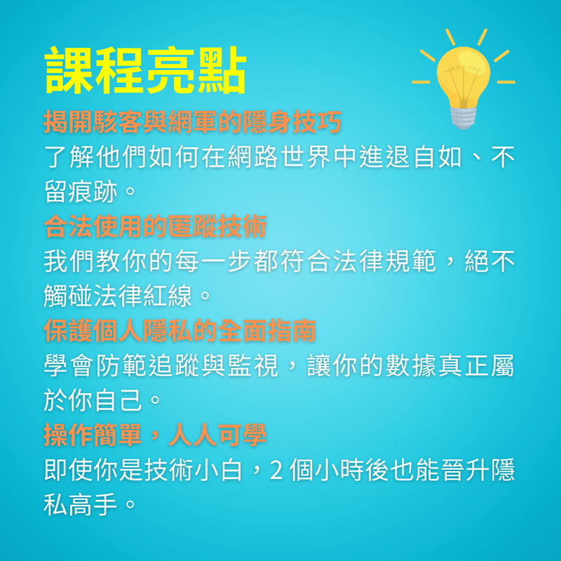 雖然屬於入門課程,但已經足夠讓你維護自身的網路隱私與安全了。